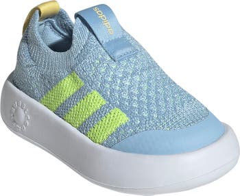 A breathable knit upper and lightweight midsole keep little feet comfortable in this bubbly sneaker marked with heritage 3-Stripes at the sides.