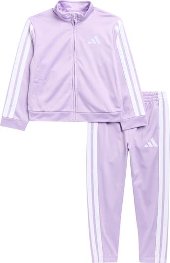 They'll comfortably move around in signature adidas style in this tricot set featuring a 3-Stripe track jacket and matching pants.