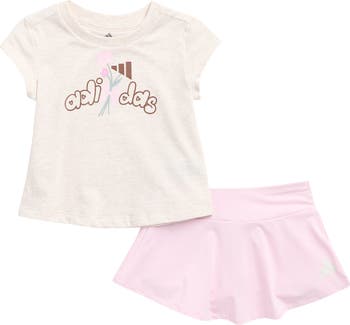 Perfect for play dates or active days, this cotton-blend set pairs a graphic T-shirt with a coordinating skort for effortless comfort.
