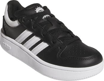 A crisp cupsole and stretchy elastic laces secure busy little feet in these lightweight sneakers finished with a signature three-stripes logo.