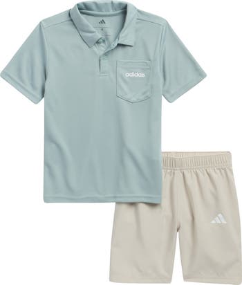 A breathable mesh polo pairs with coordinating logo-marked shorts in this lightweight set that will give your kid a complete sporty, polished look.