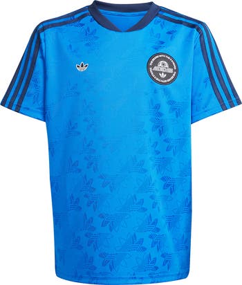 A Trefoil jacquard pattern and 3-Stripes underscore the heritage style of this soccer-inspired jersey made just for sporty kids.