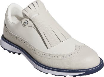 Shiny, snakeskin-embossed faux leather is detailed with pinking and broguing on a statement-making golf shoe finished with a fringed kiltie. Springy cushioning and grippy lugs energize your stance and ground your game, while an innovative BOA lacing system provides a dynamic, locked-in fit.