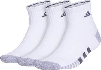 Classic 3-stripes branding marks sporty socks knit from soft, stretchy yarn with targeted mesh ventilation and cushioning for all-day comfort.