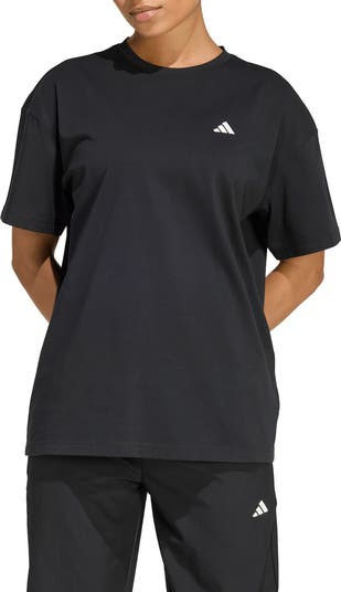 An oversized, relaxed fit gives you plenty of room to stretch out in this crewneck T-shirt that's an essential for easy movement whether lifting weights or heading to yoga class.