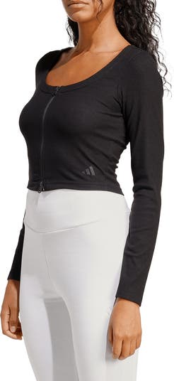 Allover ribbing and a touch of stretch ensures this zippered cardigan clings to your curves while a subtle 3-Bar logo completes your look with heritage style.
