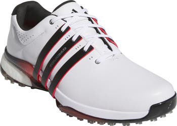 Spikeless and grippy, this wholecut leather golf shoe sits on springy Boost™ cushioning and a wraparound heel cup that stabilizes your stance through swings and putts. Grippy rubber lugs confidently ground your game in wet and dry conditions and take you off-course with ease.