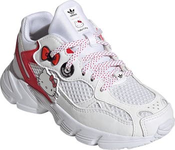 In an indulgent throwback to the early aughts, this kid-size sneaker celebrates the cuteness of Hello Kitty, collaborating with friends and adventure.