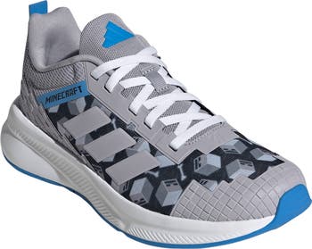 Pixelated details assemble up the sides of an iconic adidas sneaker that's sized for kids and rebuilt for the world of Minecraft.