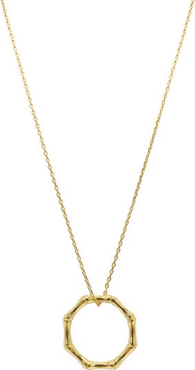A 14K yellow gold plated necklace features a bamboo-textured pendant for chic style.