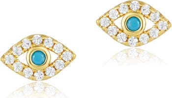 These 14K yellow plated evil eye turquoise stud earrings make for the perfect gift.
