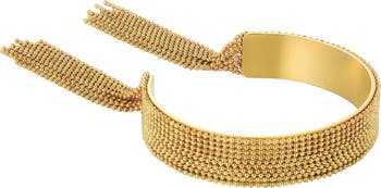 Swingy ball chains texture this sculptural cuff bracelet crafted from water-resistant stainless steel and plated in warm 18-karat yellow gold.