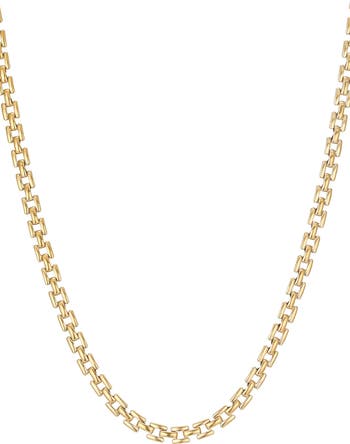 Perfect to layer or show off solo, this rectangular chain necklace is crafted from tarnish-resistant stainless steel and plated in warm 18-karat yellow gold.
