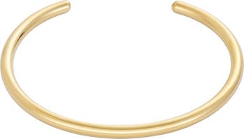 Perfect to stack or wear solo, this sleek cuff bracelet is crafted from water-resistant stainless steel and plated in warm 18-karat yellow gold.
