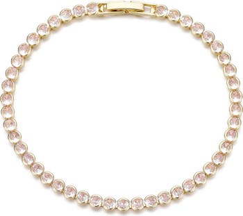 Bezel-set round crystals illuminate this glamorous tennis bracelet plated in warm 14-karat yellow gold.