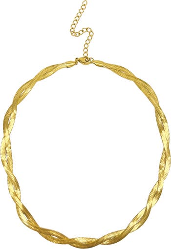 Braided herringbone adds texture and dimension to a chain necklace with a water-resistant finish that's perfect for wear anywhere.