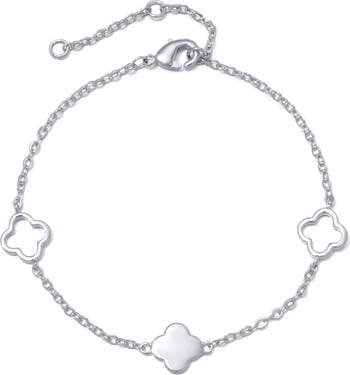 Dainty clovers catch the light on this layerable station-chain bracelet boasting a high-shine finish.