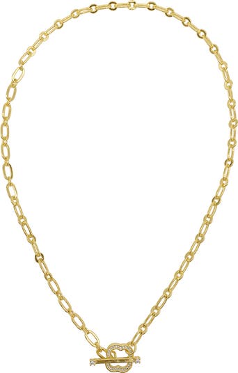 Glistening crystals elevate the clover-shaped pendant of this paperclip chain necklace.