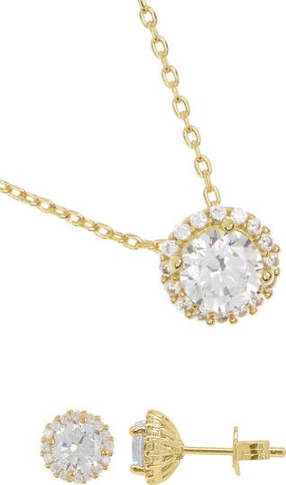Complete an elegant ensemble with this crystal-halo set including stud earrings and a matching pendant necklace.