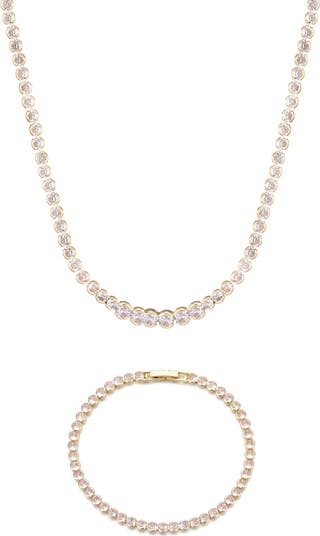 Bezel-set bright-white crystals lend shimmer and shine to this bracelet and necklace set both fashioned in a timeless tennis silhouette.