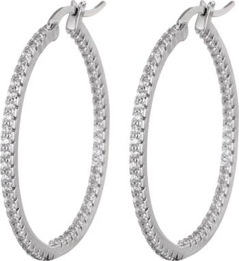 Sparkling cubic zirconia trace these glamorous inside-out hoop earrings boasting a high-shine finish.
