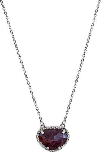 Eye-catching stones create a sparkling halo that frames a birthstone gemstone pendant that makes for the perfect gift.