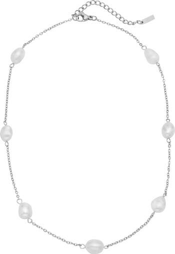 Lustrous freshwater pearl stations intersperse a delicate chain on this necklace plated in 14-karat gold with a water-resistant finish.