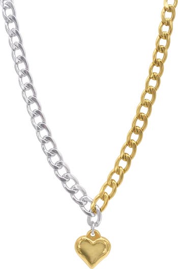 A water-resistant chain necklace with a two-tone design suspends a heart-shaped pendant that sweetens any ensemble.
