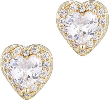 Show off romantic sparkle in elegant studs illuminated by heart-shaped cubic zirconia with shimmering halos.