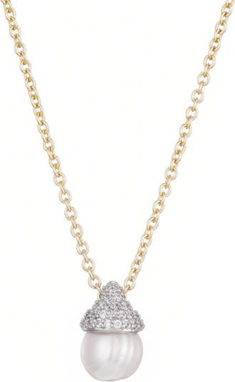 Accessorize with the timeless sophistication of this dainty chain necklace showcasing a lustrous freshwater pearl topped with a pavé cap.