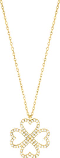 A quartet of heart-shaped petals form a clover pendant that's outlined with cubic zirconia and anchors a dainty chain necklace.