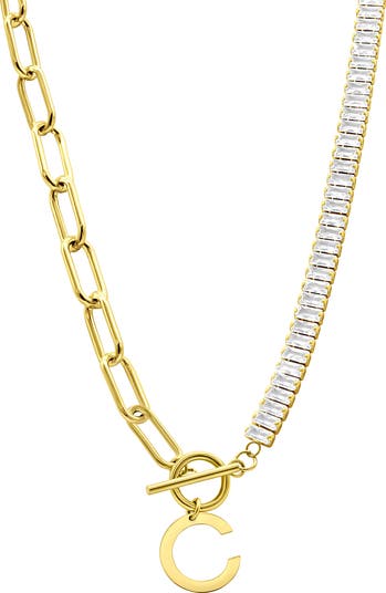 Personalize your everyday ensemble with this necklace suspending an initial pendant and crafted with half chain, half crystal sides for added allure.