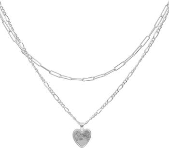 A paperclip chain and figaro chain are layered in this heart pendant necklace for sweet dimension.