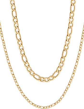 Layer on this figaro-chain necklace set crafted from water-resistant stainless steel with a white rhodium or goldtone plated finish.