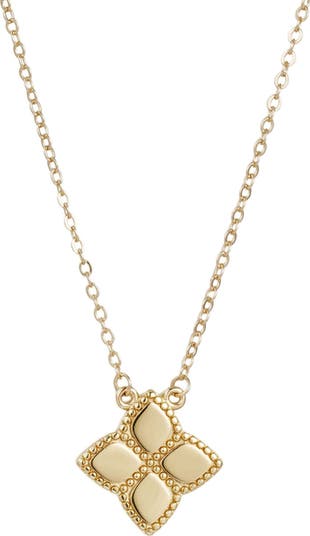A sleek and minimalist clover pendant brings sophisticated elegance to this delicate chain necklace warmly plated in 14-karat gold.