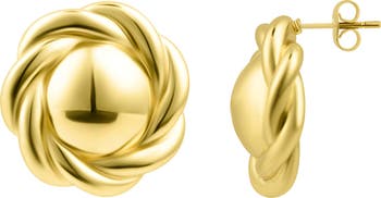 A coil of rope made in 14-karat gold plate turns simple disc stud earrings into a lovely accent of rich texture.