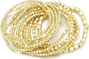 Start your stack with this set of metallic beaded stretch bracelets that bring instant texture and shine to your looks.