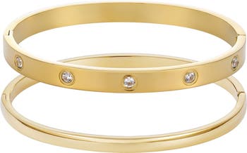 Easy to wear stacked together or solo, this set of bracelets feature a mix of a smooth and a bezel-set cubic zirconia one.