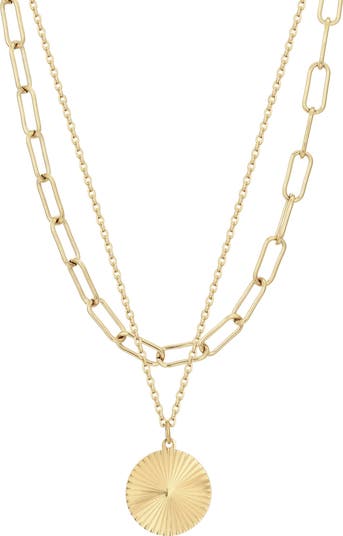 Perfect for solo or layered wear, this duo of warm 14-karat gold plated necklaces comes with a paper clip chain and a fluted pendant.