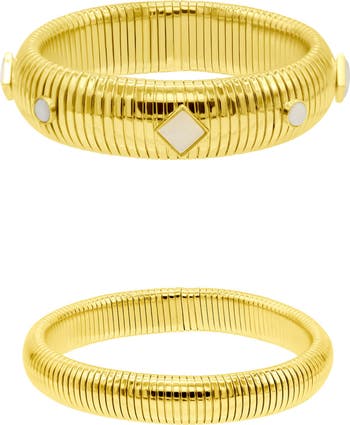 Elevate your daytime or evening ensembles with this set of bangle bracelets featuring coiled links and stationed enamel.