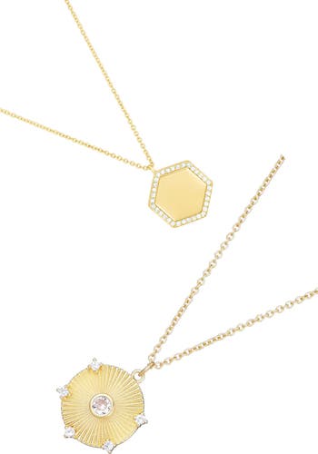 Refresh your jewelry collection with this set of chain necklaces showcasing hexagon and fluted disc pendants.