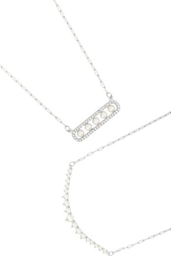 Refresh your day-to-night collection with this set of dainty chain necklaces featuring bar pendants with lustrous freshwater pearls and cubic zirconia.
