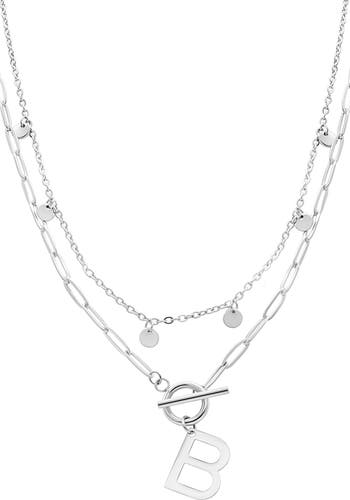 Personalize your look with this double-row mixed-chain necklace suspending gleaming discs and a toggle pendant featuring an initial of your choice.
