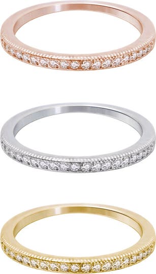 Tri-tone Swarovski crystal detail eternity band set.