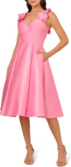 Floral Appliqué Pleated Mikado Cocktail Dress