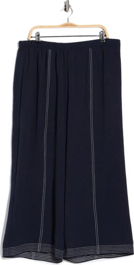 Contrast stitching accentuates the minimalist styling of these pull-on pants cut from woven fabric in a wide-leg silhouette.