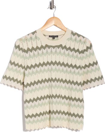 Zigzag Short Sleeve Pointelle Sweater