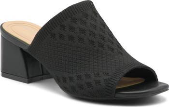 Breathable embossed knit defines this sleek sandal shaped by a squared-off open toe and set atop a well-cushioned footbed balancing comfort and style.