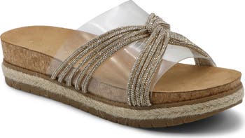 Braided espadrille trims the midsole of a wedge heel of this on-trend sandal sure to add glamour to your outfit.