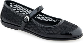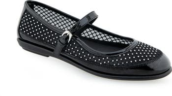 Dazzling rhinestones stand out on the breathable mesh upper of a mary jane flat set on an OrthoLite® footbed and Diamond Flex sole for superior comfort and impact absorption.